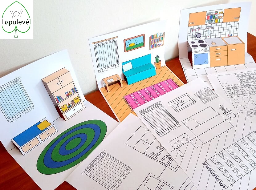 Ha szeretnek színezni a gyerekek, de unalmasak már a hagyományos kifestők, remek hírem van! Olyan 3D színezőt készítettem, ami többféleképpen köti le a őket: színezéssel, vágással és szerepjátékkal. A pici helyiségek így szinte testközelben kelnek életre. Próbáljátok ki!