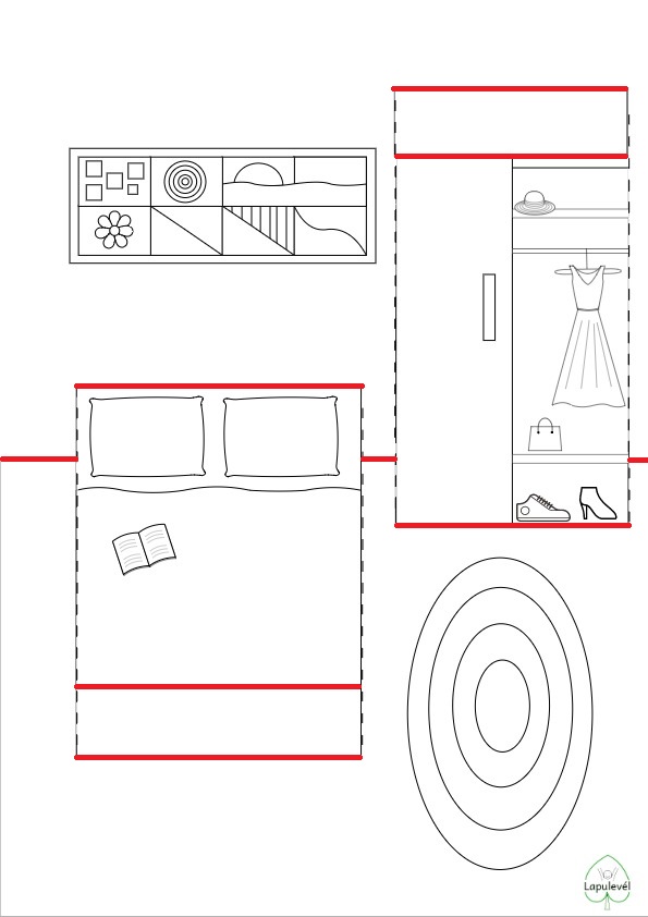 - Hajtás: A nyomtatható képek között szándékosan nem jelöltem meg a hajtásvonalat, mert rontaná az összképet. Az alábbi galériában azonban piros vonallal kiemeltem a hajtások helyeit, de megtekinthetitek oldalról is a térbeli bútorokat a színes képeken: