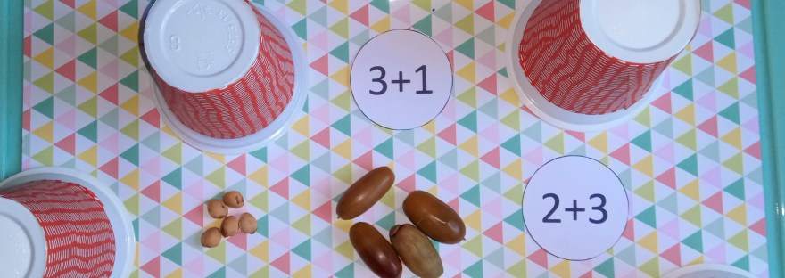 Otthon található termések, magvak, apróságok: makk, meggymag, napraforgómag, vagy gyöngy, gémkapocs stb. / Egyforma színes képek./ Számkártyák, vagy műveleti kártyák.